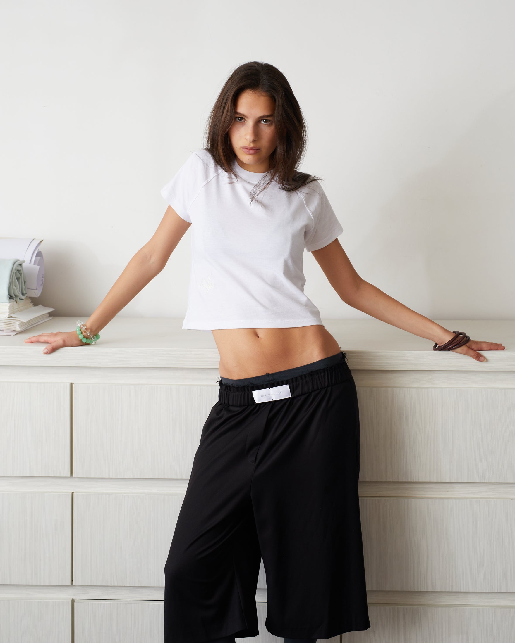 ALEX ANDRA PINTO white baby T raglan sleeves pattern, the mini version of our staple T-shirt. Features 'Ap' logo embroidery and inside out stitches. Made from 100% cotton fabric
