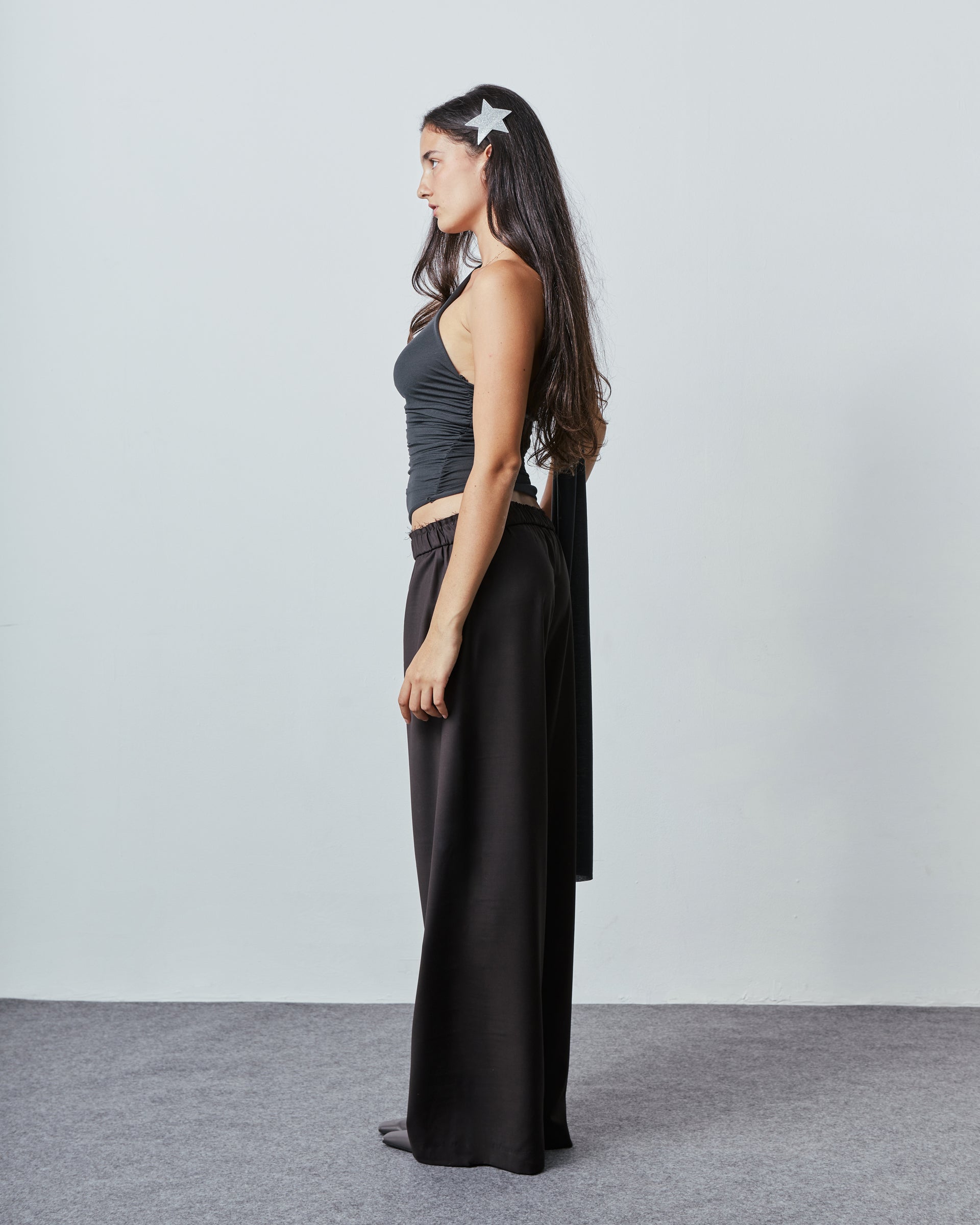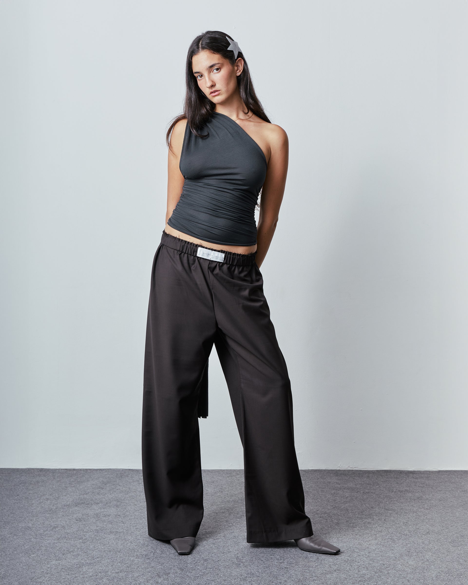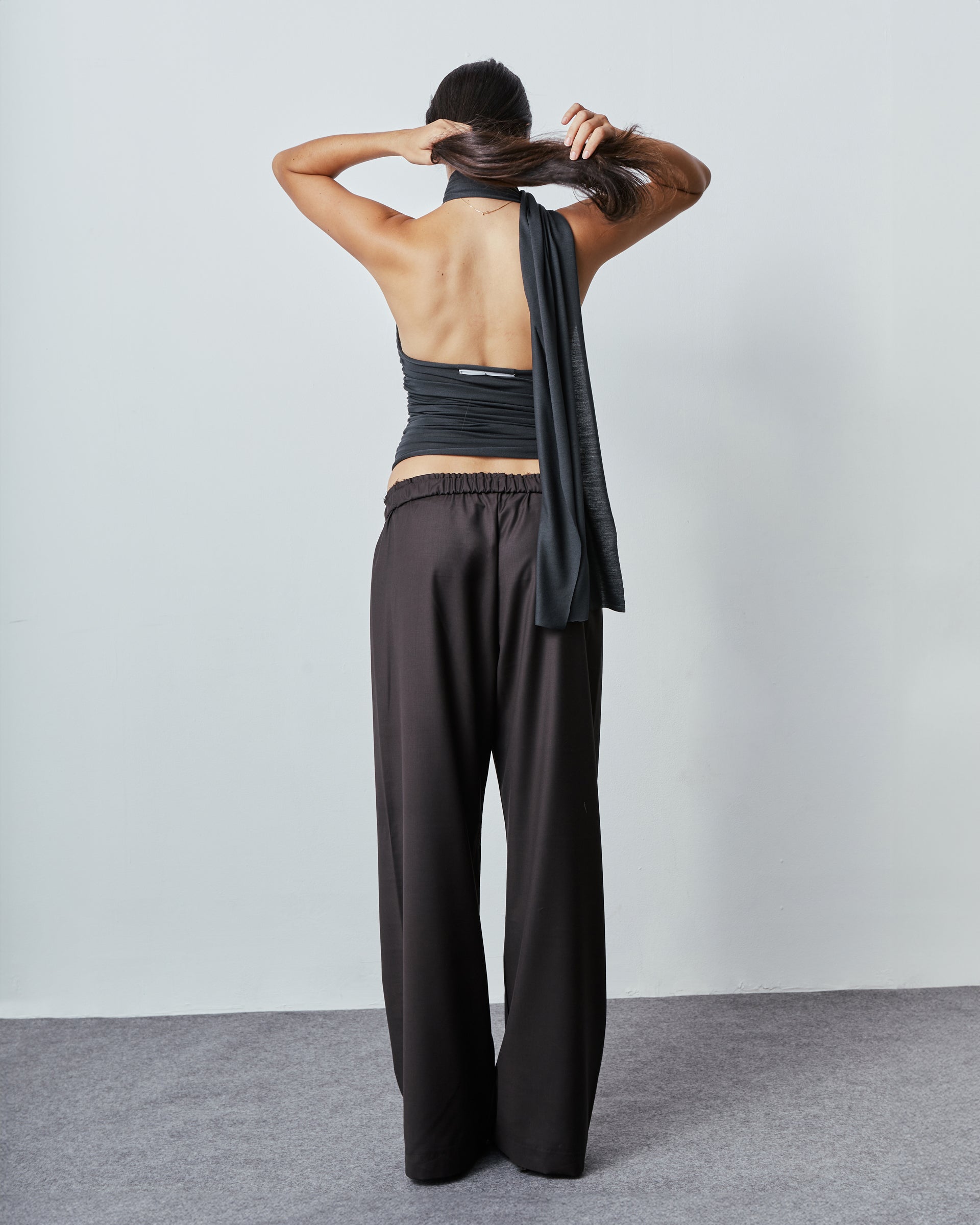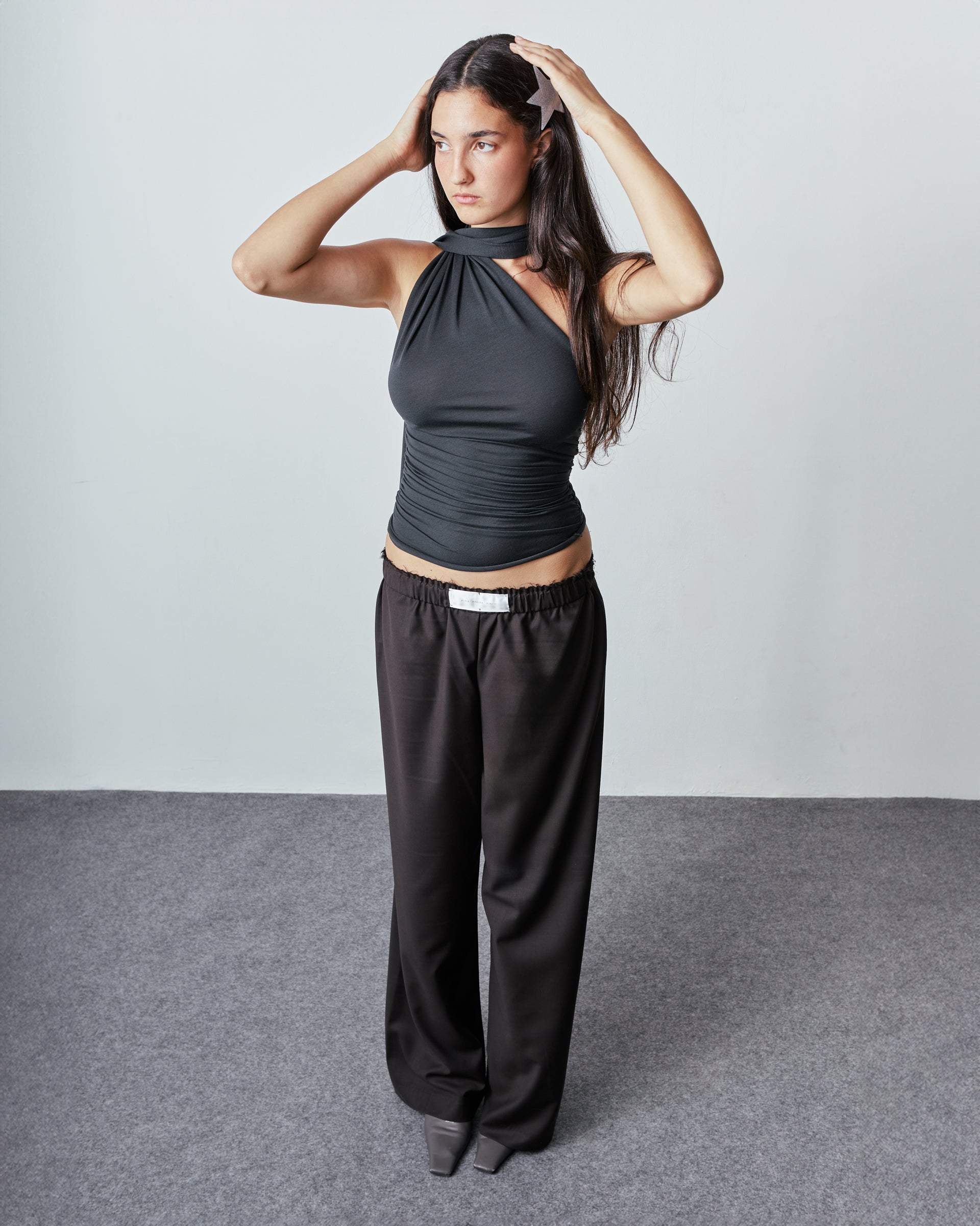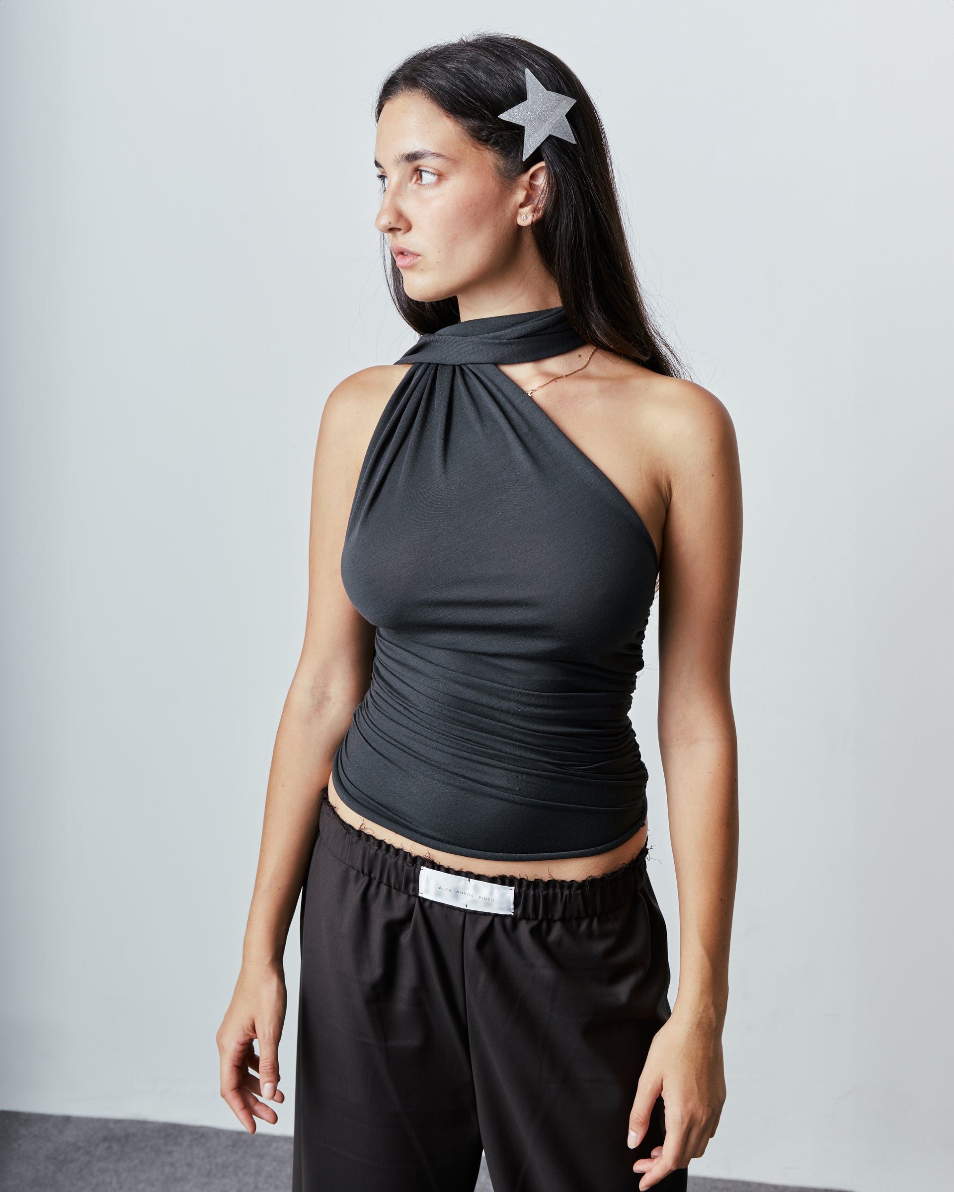 ALEX ANDRA PINTO fade black statue top is an a-symmetric multi item made of viscose blend fabric. Detailed with long scarf allows you to wear it a little different every time flattering gathering in side seams.