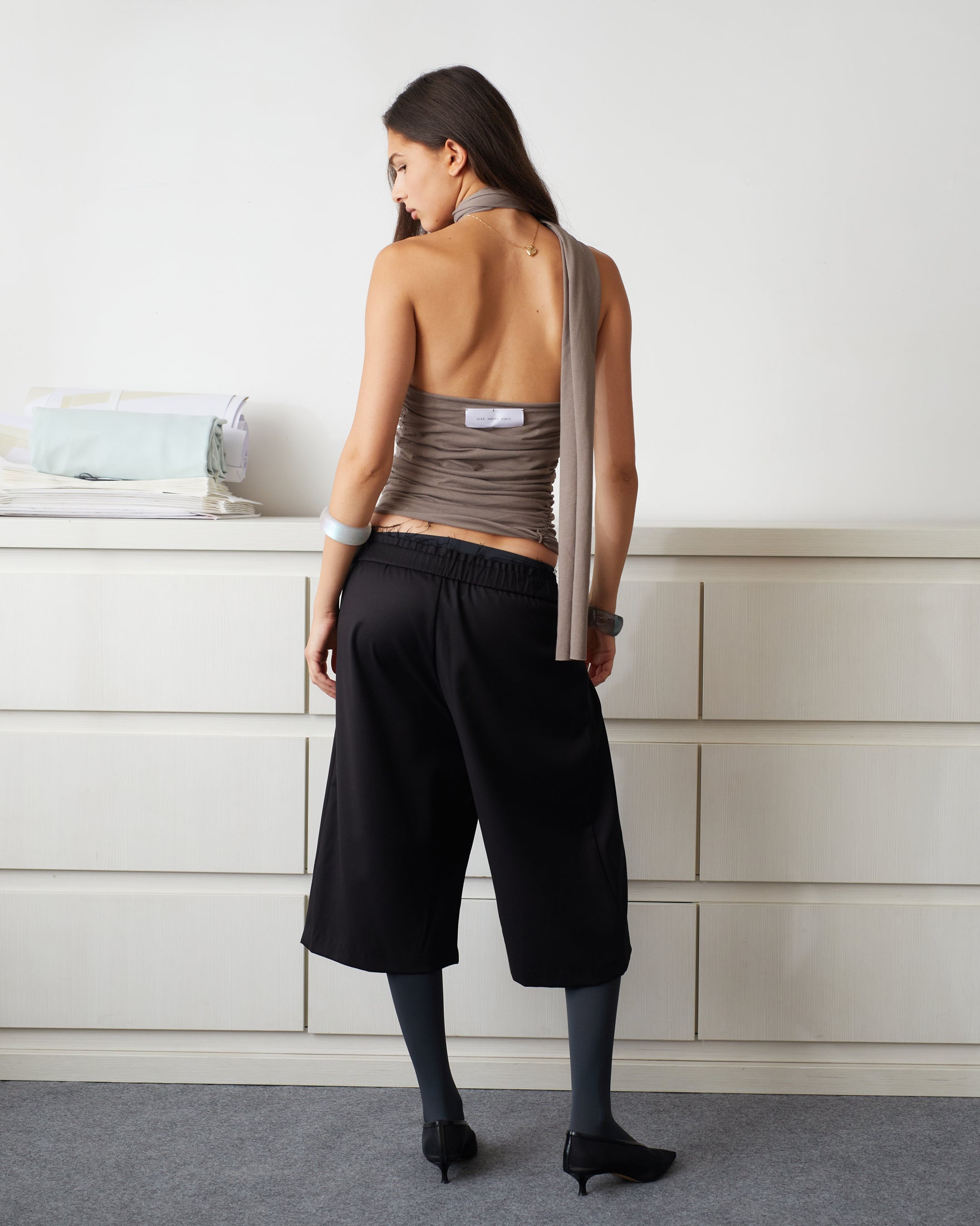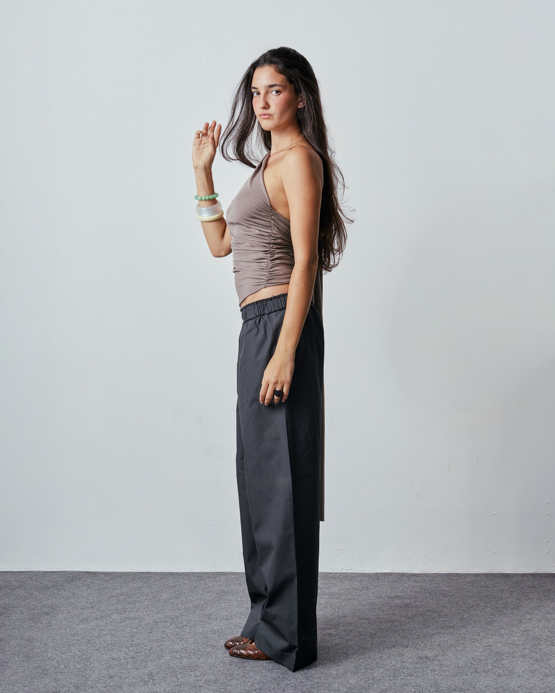 ALEX ANDRA PINTO greige statue top is an a-symmetric multi item made of 100% cotton fabric. Detailed with long scarf allows you to wear it a little different every time flattering gathering in side seams.